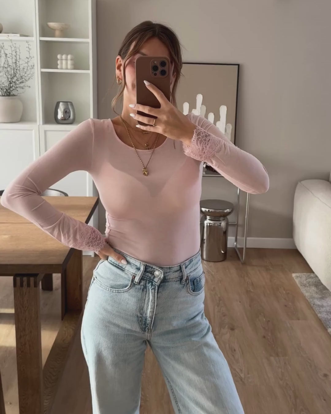 • zartes, dünnes und super weiches Longsleeve mit Spitze